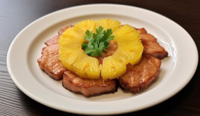 - Ананасы: Пока отбивные готовятся, обжарьте кольца ананаса на отдельной сковороде до карамелизации (около 2-3 минут с каждой стороны).
