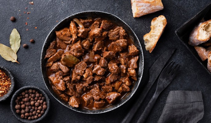- Подавать говядину по-бургундски лучше всего с картофельным пюре, свежими овощами или багетом.