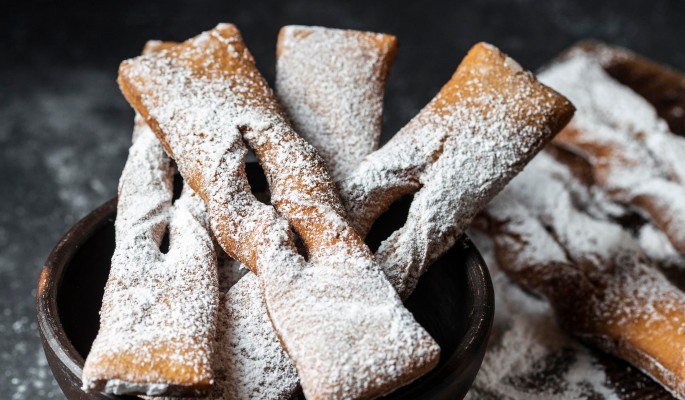 - Посыпьте готовый хворост сахарной пудрой и подавайте к столу.