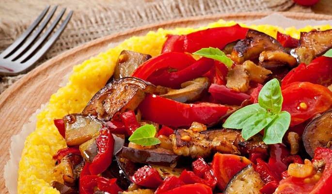 - На тарелку выложите порцию горячей поленты.