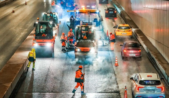 Ремонтируют дорожное покрытие преимущественно в ночное время, когда трафик снижается. Работы проходят в несколько этапов. Сначала проводят фрезерование существующего покрытия, затем ремонтируют смотровые колодцы и дождеприемные решетки, после чего укладывают асфальт. На завершающем этапе наносят дорожную разметку.