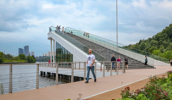 Новая набережная протяженностью 3,5 км является современной прогулочной зоной. Здесь можно пройтись по расположившемуся над водой деревянному настилу длиной 1,7 км, посетить кафе со смотровой площадкой или спортивный кластер с 12 игровыми полями. В центральной части разместили павильон для юных горожан «Московские каникулы» с развлекательными интерактивными зонами и VR-ареной. Также здесь создан свадебный сад с церемониальной зоной на воде и павильоном для гостей молодоженов. Он расположен недалеко от места впадения реки Жужи в Москву-реку. Украшением променада стали многочисленные павильоны с изображением знаковых памятников музея-заповедника «Коломенское». Их архитектурное решение с плавными линиями, светлыми тонами, панорамным остеклением и художественной подсветкой подчеркивает легкость, эстетику, технологичность и современность обновленного ландшафта.