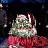 Прощание с Арменом Джигарханяном проходит в Московском драматическом театре. Проводить артиста в последний путь пришли десятки человек – его родные, друзья, коллеги и поклонники. Охранники просят людей надевать маски и соблюдать социальную дистанцию.