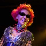 Женщина пришла в студию в больших очках со светоотражающими стеклами, ботинках на платформе, длинной юбке и синем пиджаке. Шею исполнительницы украшали странные ожерелья: одно – с красными шипами, а второе – в серебряных пайетках, похожее на шарф. Но больше всего привлекало внимание лицо – казалось, будто на Жанну дует ветер, поэтому кожа на голове сильно натянута, губы сложены трубочкой, а глаза слегка прикрыты. Макияж был сдержанный, однако выделялись накладные ресницы – довольно пугающее зрелище