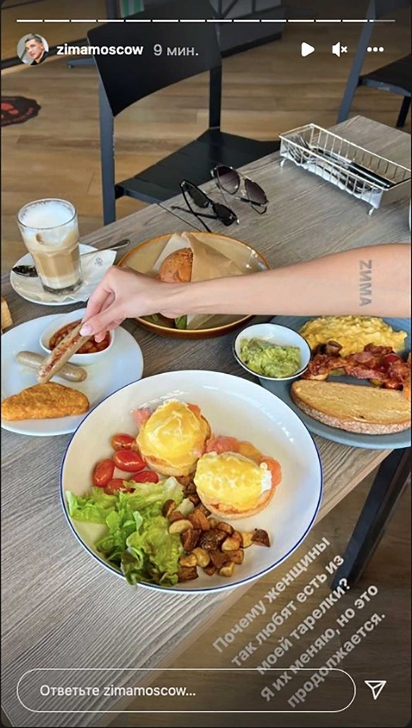 Сегодня бизнесмен также опубликовал фотографию и пожаловался на неприятные ему привычки его женщин. Он сфотографировал стол, уставленный тарелками с разнообразной пищей. Видно, как к его еде тянется женская рука, которая уже успела ухватить поджаренную сосиску.