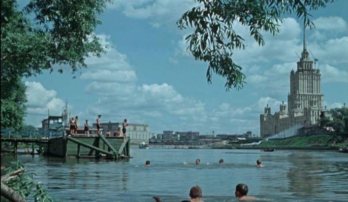 1. Героиня этой ленты идет на фоне Большого Московского цирка на проспекте Вернадского и главного здания МГУ.