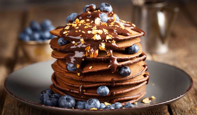Подавать панкейки можно с сиропом, вареньем, сметаной или другими добавками по вкусу.