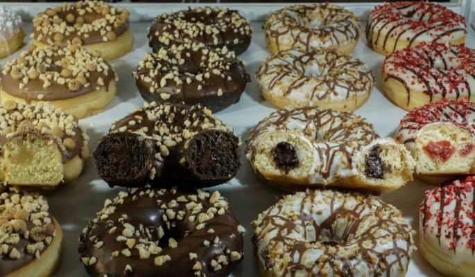 7. Порежьте на две половинки пончики и начините кремом.Пончики с кремом готовы к подаче! Приятного аппетита!