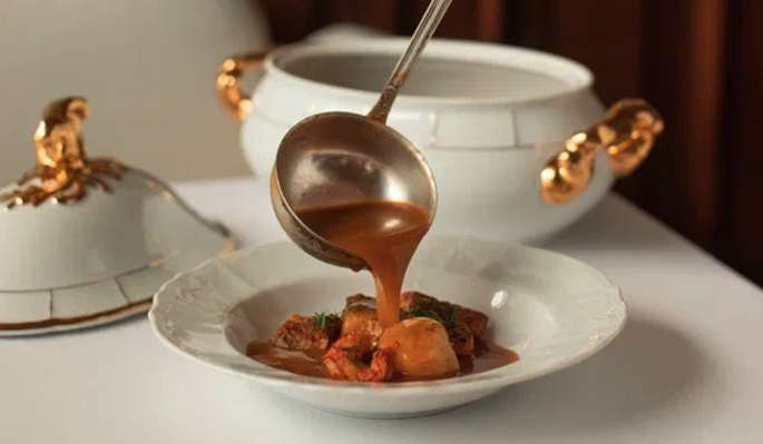 В разделе супов найдется и густой буйабес, и ароматные кислые щи с копченой грудинкой, и насыщенный говяжий консоме с черносливом и хрустящими артишоками.